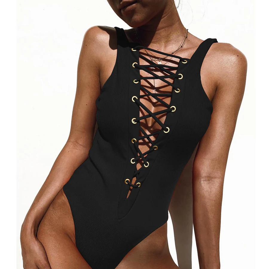 .Gallery for 2019 Sexy Deep V-Neck Black One Piece Swimsuit Women Bathing Suits Backless Retro Red One Piece Swimwear Women Swimsuit Girls